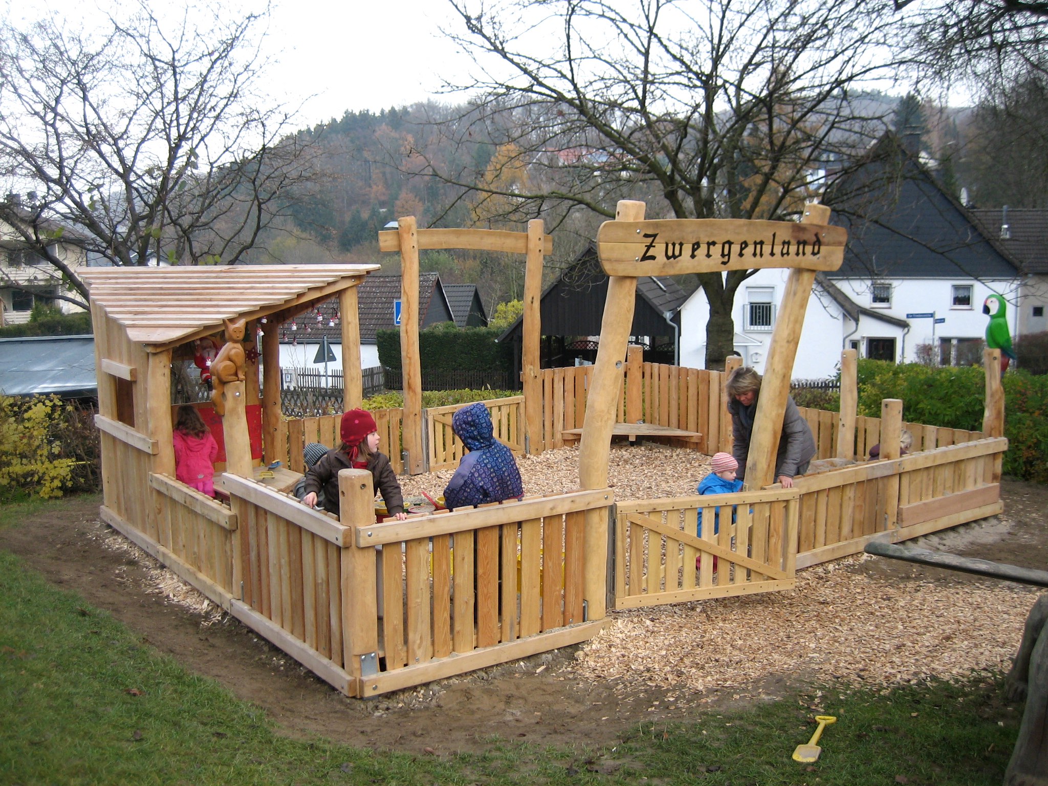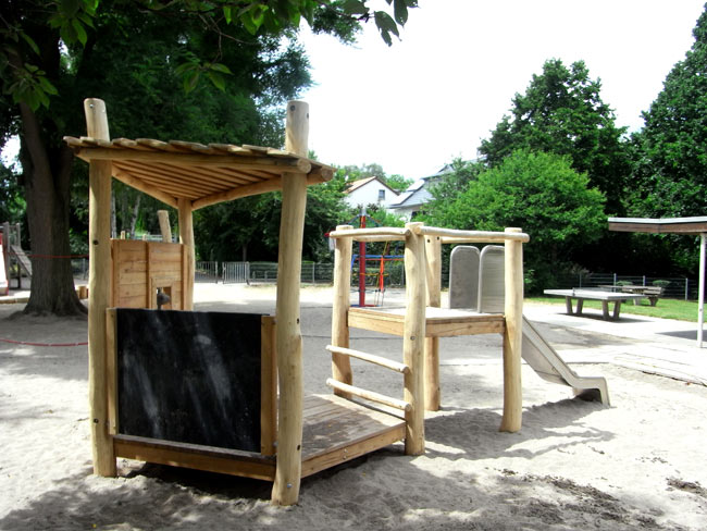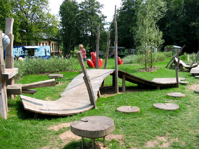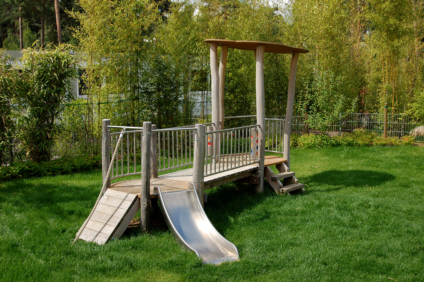 Les jeux avec les objets proposés par la nature stimulent la fantaisie et la créativité des enfants. Pour plus de facilité, on a retiré bien souvent le sable ou les arbres dans les cours d’écoles modernes. Les enfants n’ont plus le droit de se cacher, ou de tester leurs limites sur des agrès naturels et intéressants.